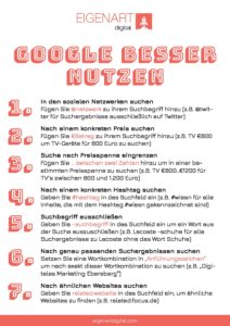 Infografik_SuchbefehleGoogle Eine Infografik über Google Suchbefehle Please Share This Diesen Inhalt teilen Öffnet in einem neuen Fenster Öffnet in einem neuen Fenster Öffnet in einem neuen Fenster Öffnet in einem neuen Fenster Schreibe einen Kommentar Antwort abbrechenKommentierenGib deinen Namen oder Benutzernamen zum Kommentieren ein Gib deine E-Mail-Adresse zum Kommentieren ein Gib deine Website-URL ein (optional)